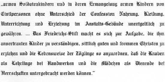 Ursprünglich lautete der Auftrag des 1807 von Königin Luise gegründeten Friedrichs-Stifts, Nach dem 2. Weltkrieg übernahm der Rechtsanwalt Dr. Staub den Vorsitz der Stiftung und