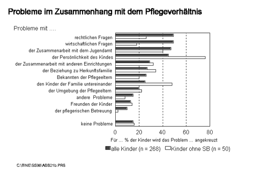 Die Ergebnisse machen deutlich, daß in Abhängigkeit von den Besonderheiten des Pflegekindes - hier nur grob danach klassifiziert ob eine Schwerbehinderung vorliegt oder nicht - bei den Familien sehr unterschiedlicher Unterstützungsbedarf vorliegt. Das würde bedeuten, daß die Jugendämter eine Differenziertheit in Bezug auf die notwendigen Hilfemaßnahmen akzeptieren und dementsprechend den Hilfeplan gestalten sollen.
