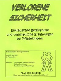 Die beiden Hefte (je 27 Seiten) demonstrieren vorbildliche Fortbildungsarbeit wohlorganisierter Pflege- und Adoptiveltern. Schon die Auswahl des Referenten spricht für hohe Qualitätsansprüche: Dipl.-Psych. Dr. Scheuerer-Englisch ist als Mitglied des Regensburger Forschungsteams um Karin und Klaus Grossmann wissenschaftlich ebenso ausgewiesen wie als praktisch tätiger Psychotherapeut und Erziehungsberater.